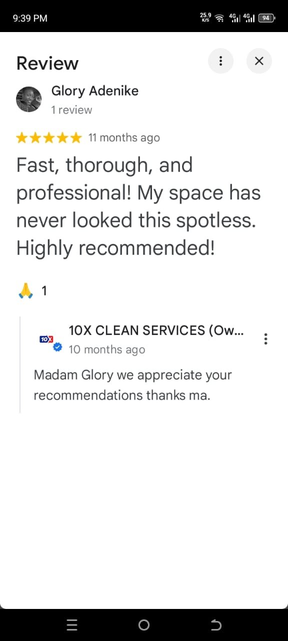 Our clients trust 10X Clean for fast, detailed, and reliable service that transforms their spaces, delivering spotless results with professionalism, care, and excellence every single time.